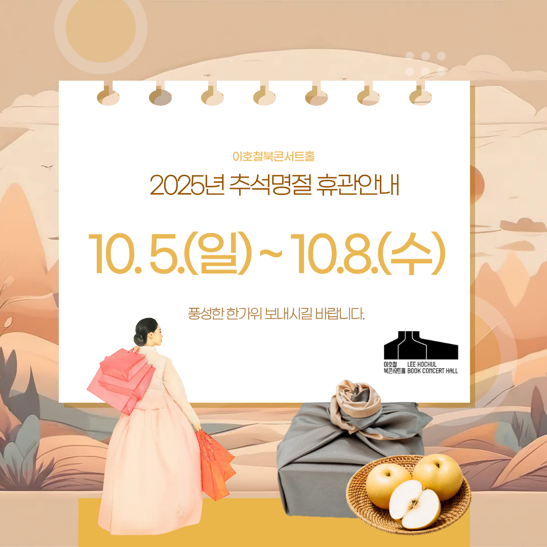 2025.10.01.이호철북콘서트홀에서 예정되어 있는 시설 대관 일정을 안내드립니다. ✔️ 대관 시간 중에는 일반 관람객 분들의 이용이 불가하오니 시설 방문 시 참고 부탁드립니다. (북토크룸 대관시 북콘서트홀 이용 가능) ?10.10. (금) ~ 10.17.(금) 전일 은평구청 감사담당관 - 2025 은평구 인권공모전 전시회 장소 : 북콘서트홀 ?10.12. (일) 13:00~17:00 정지은님 - '소셜 아트 프로젝트' 북콘서트 장소 : 북콘서트홀 ?10.14.(화), 10.21.(화), 10.28.(화) 19:30~21:00 은평마을대학 - 지역주민 아카데미 장소 : 북콘서트홀 ?10.16. (목) 17:00~21:30 청장년희망과 - 2025. 청년정책 발표회 장소 : 북콘서트홀 ?10.24. (금) 13:30~17:00 한국사회복지실천연구학회 - 사회복지실천연구학회 추계학술대회 장소 : 북콘서트홀